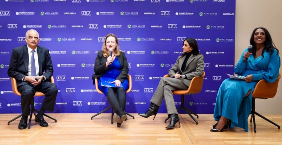 From feminist diplomacy and gender-based violence to human trafficking, displaced peoples, environmental health and sustainability action, the Women’s Forum USA held at Vital Voices Global Headquarters for Women’s Leadership on the last Wednesday of Women’s History Month tackled many of the world’s most pressing issues, but from a feminist vantage point.